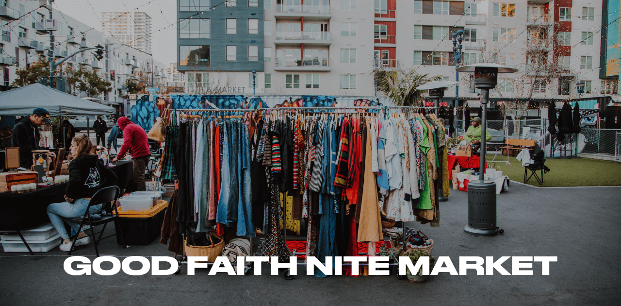 Good Faith Nite Market is an opportunity to shop a diverse selection of local business, artists, and creatives with friends and peers! Multiple DJ’s give a lively backdrop to your shopping experience and Guayaki Yerba Mate provides support to help make the evening great! We at Good Faith are excited to be accepting vendors now at www.Good-Faith.co