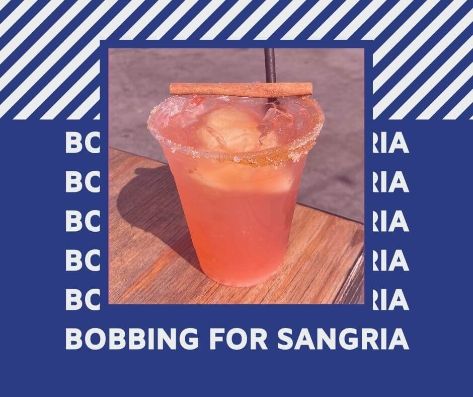 BOBBING FOR SANGRIA: WHITE WINE, VODKA, SPICED APPLE COMPOTE, RED APPLE LIQUEUR, GARNISHED WITH A CINNAMON STICK